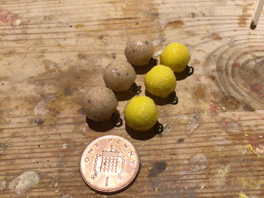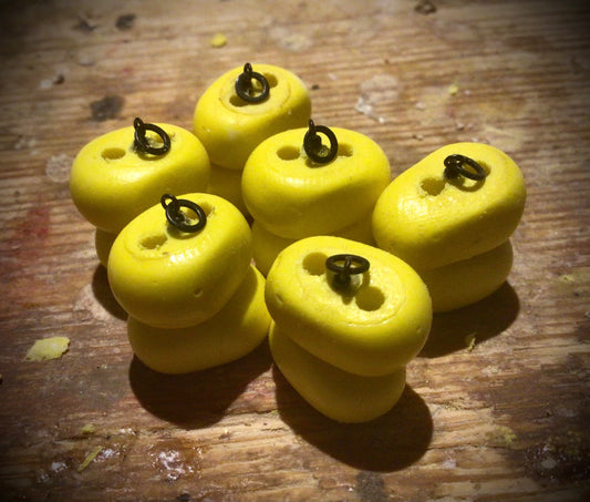 6x12mm solid epoxy wafters in washed out nut and golden yellow on hook ring swivels