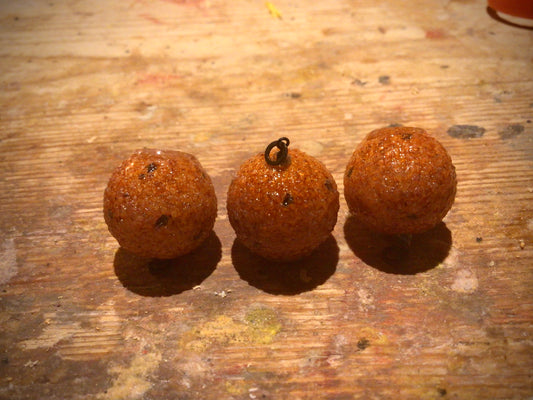 3x Brown/Red fishmeal type with hook ring swivel( good match for baitworks Atlantic heat)