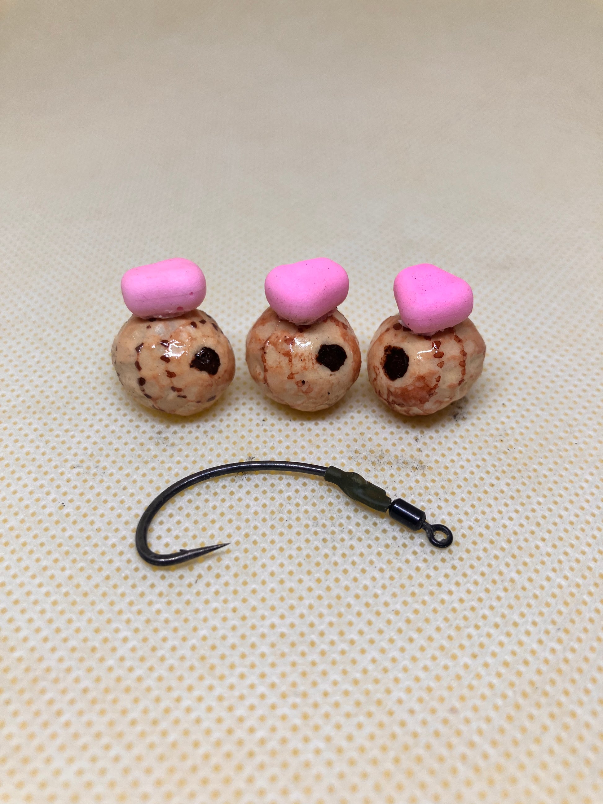 3x pink corn tipped tiger nuts 14/15mm on hook ring swivels *Read description*